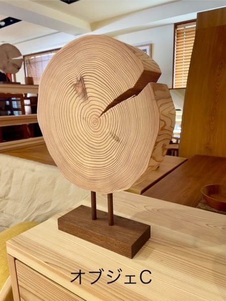 杉年輪のオブジェ(左からA、B、C)